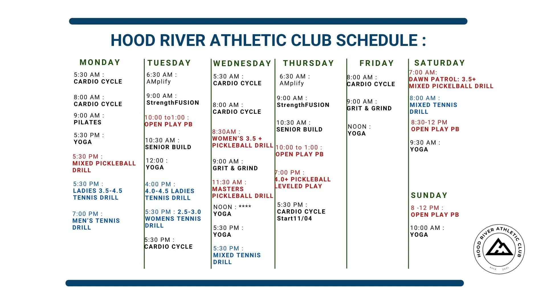Mike Schrenkel : T/Th Cardio Cycle: Mike, a club member since 2012, coached our BikeFIT class for eight years. He's a certified indoor cycling instructor and a National Academy of Sports Medicine Performance Enhancement Specialist. Mike holds USA Cycling and CrossFIT coaching certifications and is currently a Level 2 coach for Hood River's new National Interscholastic Cycling Association (NICA) youth mountain bike team. He's passionate about cycling, competing in Gravel, mountain bike, and cyclocross races. Mike advocates high-intensity interval training for time-crunched individuals and is dedicated to helping others improve their health and wellbeing.